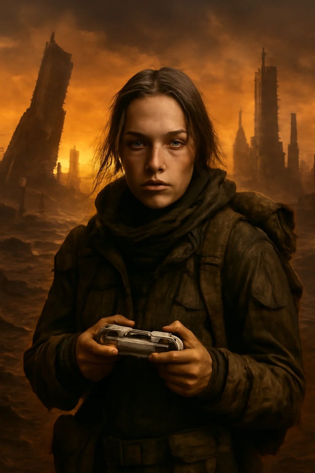 The 'Dust & Chrome' aesthetic is born from the powerful juxtaposition in its name. The "Dust" represents this new, primal world: the gritty, sun-scorched desert, the crumbling ruins of cities, and the rusted-out metal husks of forgotten machines. The "Chrome" represents the ghost of the high-tech, pre-cataclysm past. It is the scavenged, misunderstood, and often broken technology that survivors wear as makeshift armour, tribal trophies, or jury-rigged weapons. The style is therefore a "scavenger aesthetic," where nothing is new, and every object is a repurposed relic, creating a portrait of a hardened survivor defined by both the world's end and the fading chrome of the world that was.