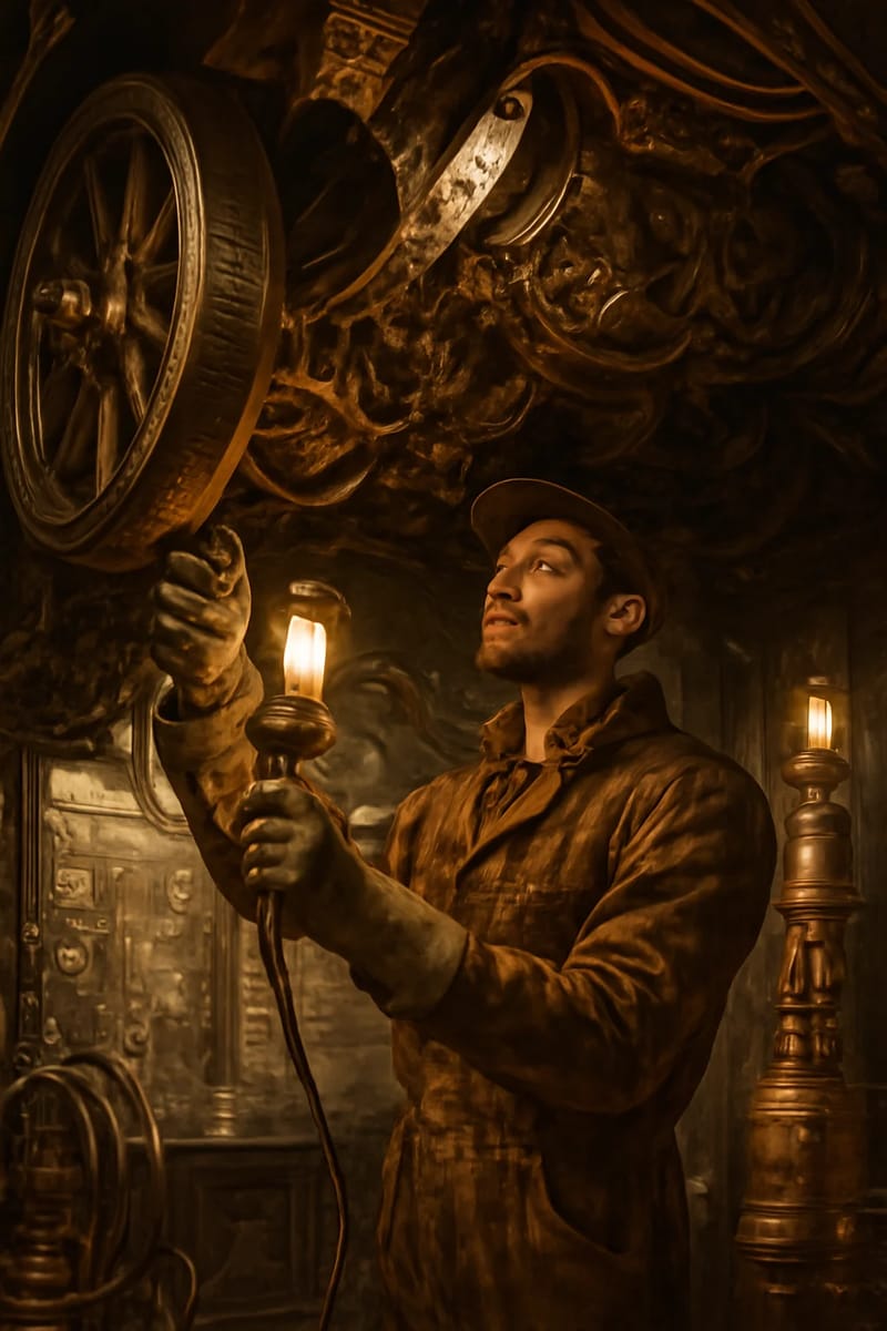 This style is inspired by Steampunk, a genre of "retro-futurism" that builds its world from a single, powerful "what if?" It imagines a 19th-century Victorian society that achieved a high-tech future, but one powered by steam, clockwork, and gears—not by electricity, silicon chips, and digital code. It is a mythos that celebrates the analog machine, the industrial revolution, and the spirit of the gentleman (or gentlewoman) inventor.