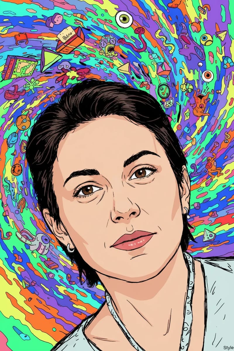 The 'Portal Pop' style achieves this chaotic feel through a specific set of anti-rules. Character anatomy is deliberately unstable: figures have large, often misshapen heads, thin, "noodly" limbs, and simple dot-like eyes with signature wobbly, free-floating pupils. The line work is "squiggly" and loose, as if sketched rapidly, and the colour palette is bright, high-saturation, and often clashing, emphasising the alien and the absurd. The style populates its world with bizarre flora and fauna, transforming any scene into an interdimensional landscape of vibrant, psychedelic, and comical chaos.