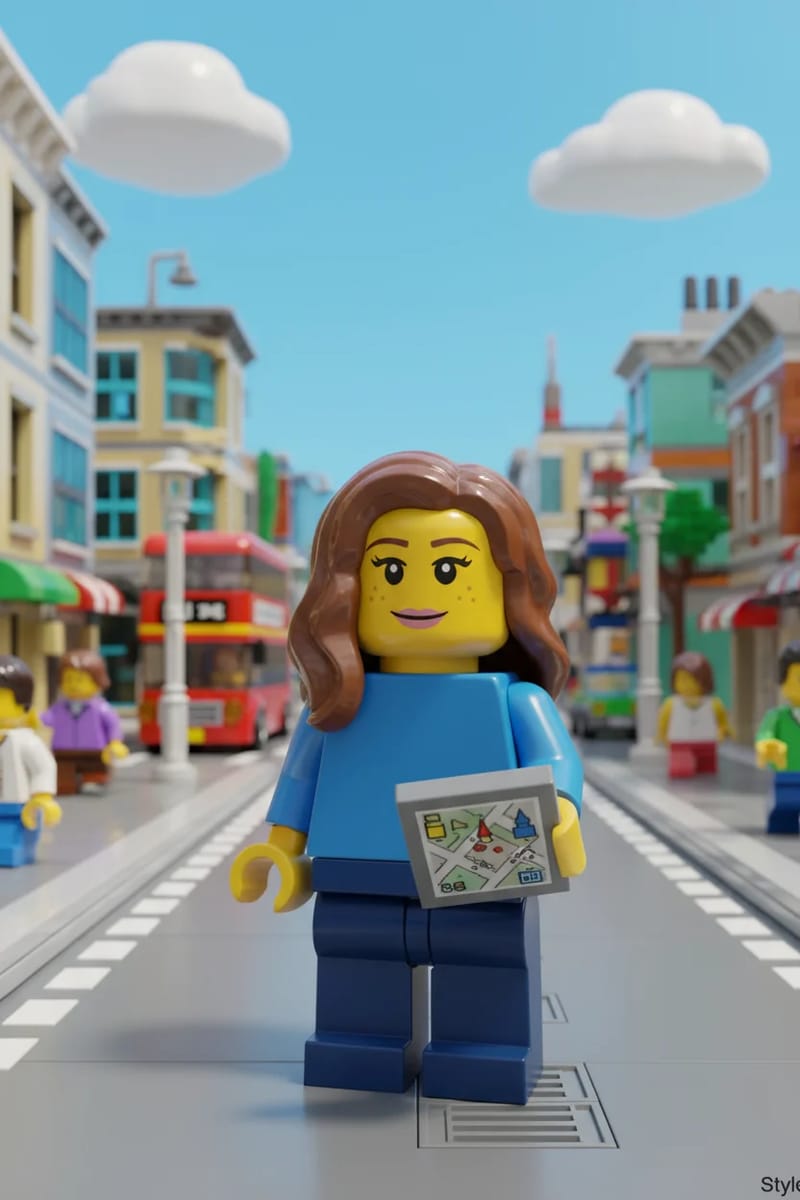 This style is inspired by the creative, systematic world of interlocking plastic construction toys. The aesthetic is born from a precise, modular "system of play" where complex structures and entire universes are built from simple, uniform, and brightly-coloured geometric blocks. This 'Brick Builder' style applies that rigorous, grid-based logic to your entire photo, deconstructing the real world into its essential components and reassembling it from a palette of glossy, primary-coloured plastic.